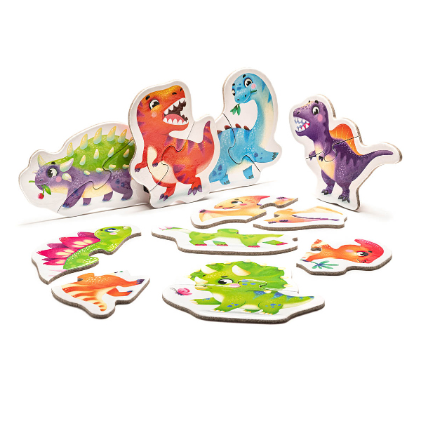 Cubika 8in1 Dinosaurs Puzzle Toy For Kids. Set of puzzles “Happy dinosaurs”?will introduce a child to funny dinosaurs. The set consists of 8 animal puzzles. To get an image of an animal, a child needs to find and connect 2 suitable elements. These are the first puzzles for the smallest little ones, which give an idea of how to get the whole image from pieces.