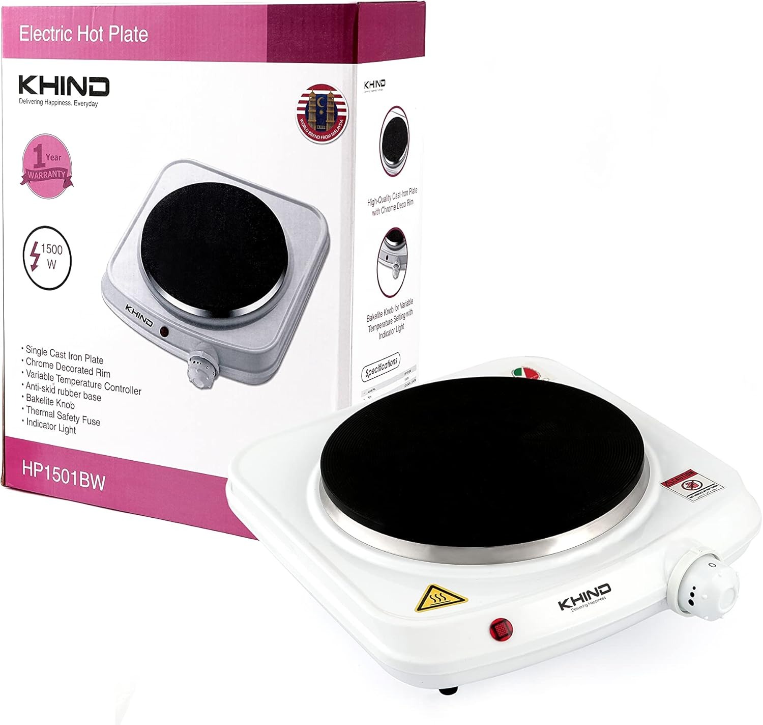 The need of every home is an ultimate cooking convenience appliance. A single hot plate is extremely useful to have, whether you plan to use it as a short-term solution or a long-term fixture. KHIND Hot plate features one solid cast iron plate for placing your cooking utensils and powers up to 1500W. It can accommodate pressure cookers, pots, pans, and saucepans of most sizes. The appliance has one individual neon pilot indicator light, so you will always be able to see if the appliance is heating or not. It’s built to last, is durable, corrosion-resistant, easy to clean, and has an adjustable temperature control function that acts as a safety measure. It has a thermostatic dial to switch on and control the appliance temperature. When the appliance reaches the set temperature it will stop increasing the heat and maintain an even temperature for your cooking thus saving energy too. Beneath the body of the hot plate, there are 4 sturdy anti-skid rubber feet to ensure it stands stable and firm while you are using it. These feet service a dual purpose as they allow heat from the device to escape underneath to prevent it from overheating. It is a great addition for warming, cooking, boiling, frying, simmering, and much more.