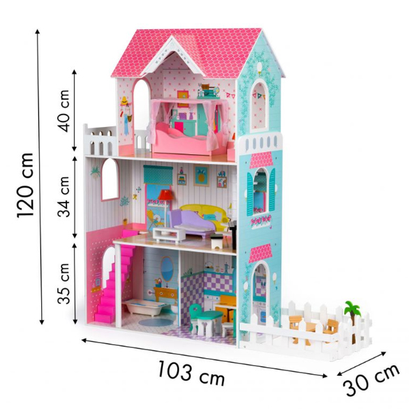 This 3-story dollhouse will make a dream home for your children’s dolls! It is the ideal location for all sorts of role-playing adventures.