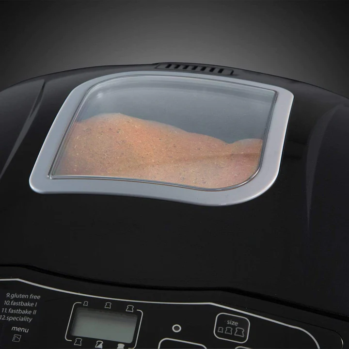 The easy-to-follow LCD display makes the baking experience easy and quick while watching the progress of your loaf through the large viewing window. The bread maker also has non-slip feet on the base to prevent the appliance from moving or slipping on shiny kitchen work tops.