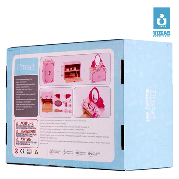 Udeas Boxset Beauty Toy Set for Girls | Wooden | PLUGnPOINT. Make yourself magnificent with a gorgeous beauty boxset. This compact dresser has all the essential accessories. Your little girl’s imagination will blossom as she prepares to be the belle of the ball.