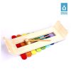 Long string for easy pulling, 2 parts of string connected by a safe plastic lock to pass international toy safety tests. Striking the chiming metals on the xylophone creates different gentle tunes that help train the kids’ hand and eye coordination skills. Eight different colors are representing different tunes, which helps form the sense of music for kids.