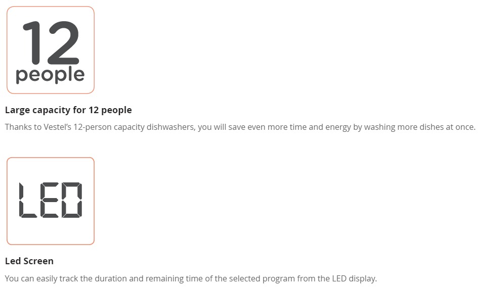 Vestel D141 A++ 12People Dishwasher is made In Turkey is very efficient energy performance and saves each drop of water with efficient water consumption. It is possible to have better drying performance. Eco-friendly eco-wash technology provides washing performance when the dishwasher is not fully loaded. Delay timer you can start the program by postponing it until the desired time of the delay so you can program your Vestel dishwasher according to your life. “